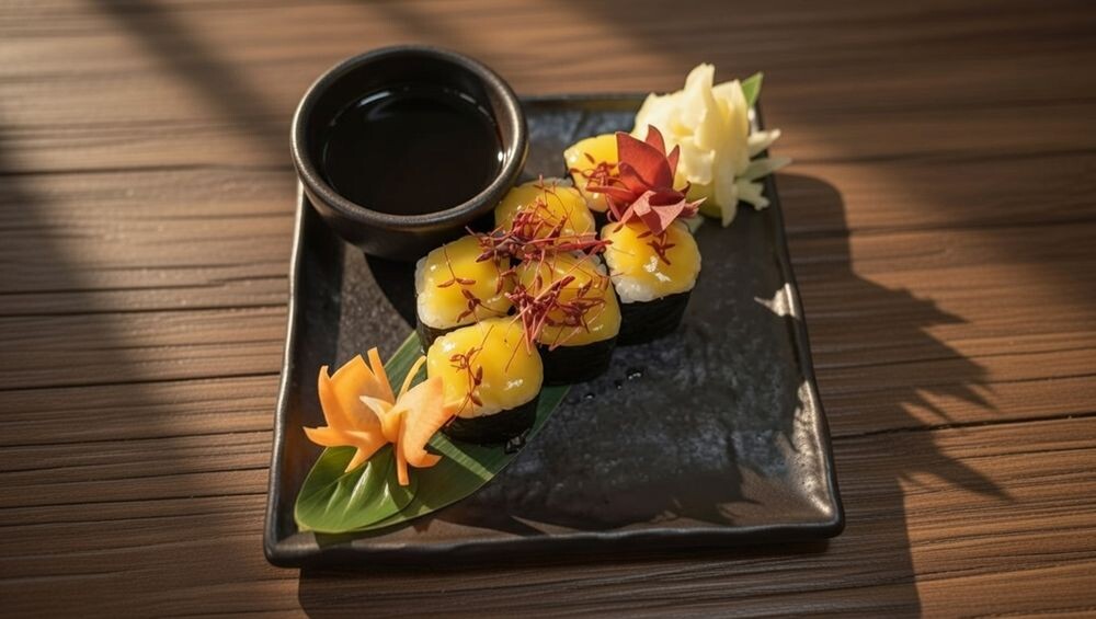 Нори. рис японский, креветка тигровая, соус манго