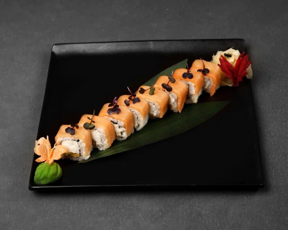 Нори, рис японский, сыр творожный, авокадо, лосось