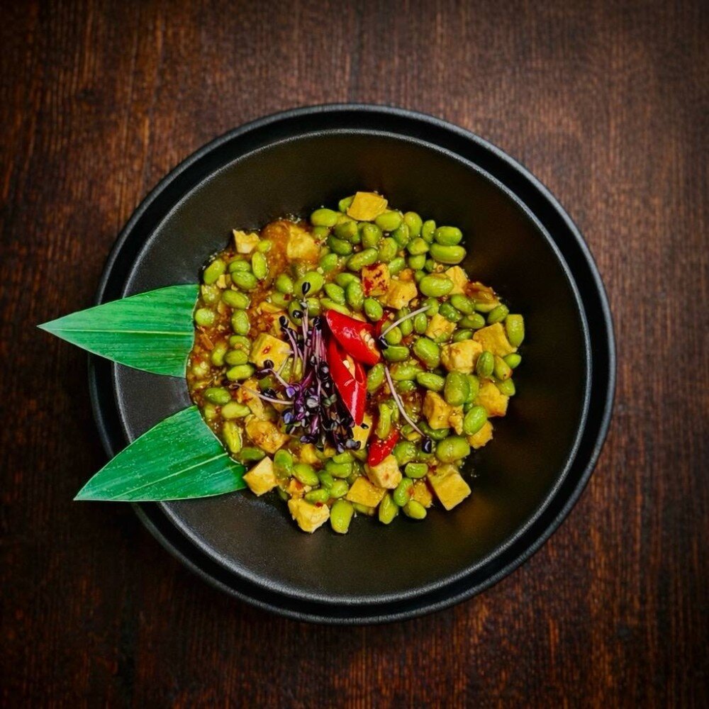 Эдамаме бобы, творог тофу,, перец чили острый, паста чили, бульон куриный, соус унаги, масло кунжутное