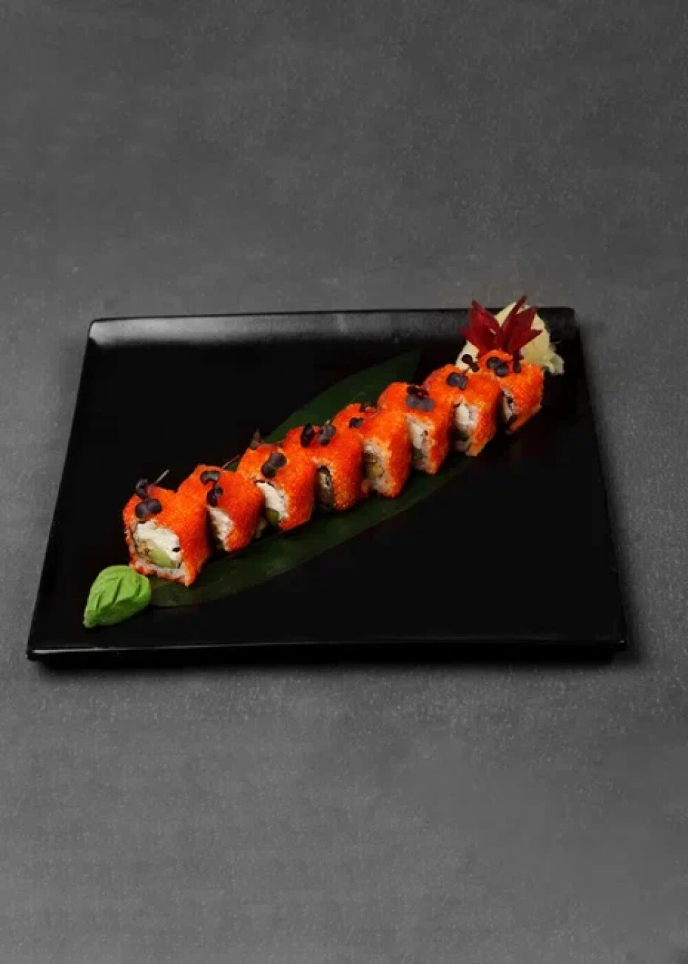 Нори, рис японский, сыр творожный, икра тобико, авокадо, угорь